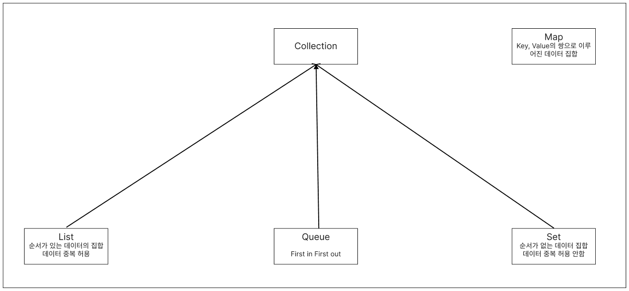 컬렉션은 여러가지 종류가 있고, 각자 데이터를 넣고 빼는 방법이 다르기 때문에 용도에 맞게 사용한다.